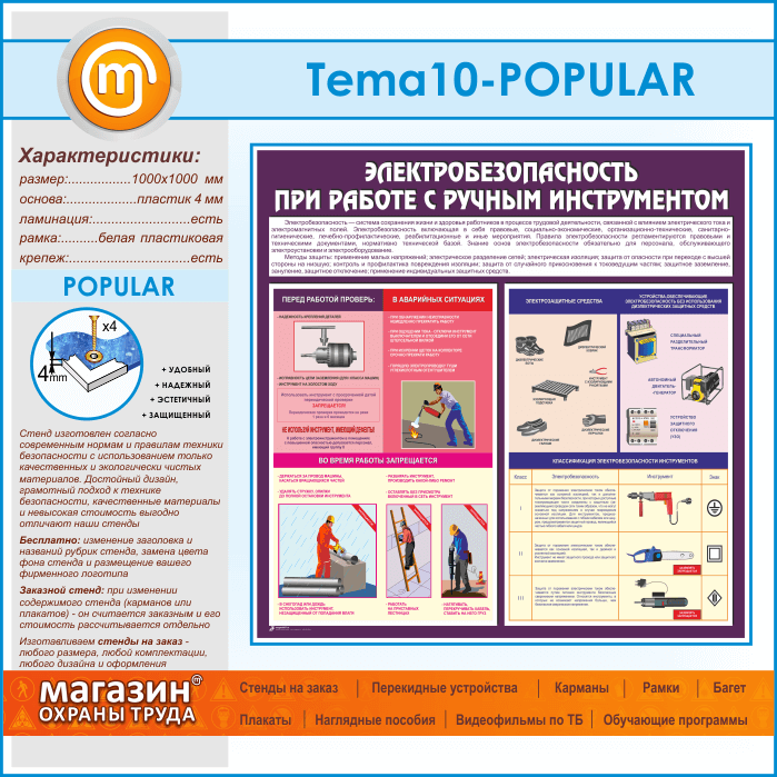 Стенд «Электробезопасность при работе с ручным инструментом» (TM-10-POPULAR) в Томске купить