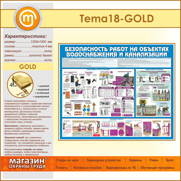 Стенд «Безопасность работ на объектах водоснабжения и канализации» (TM-18-GOLD) в Томске купить