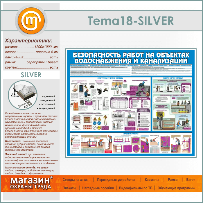 Стенд «Безопасность работ на объектах водоснабжения и канализации» (TM-18-SILVER) в Томске купить