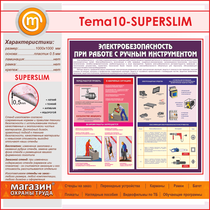 Стенд «Электробезопасность при работе с ручным инструментом» (TM-10-SUPERSLIM) в Томске купить