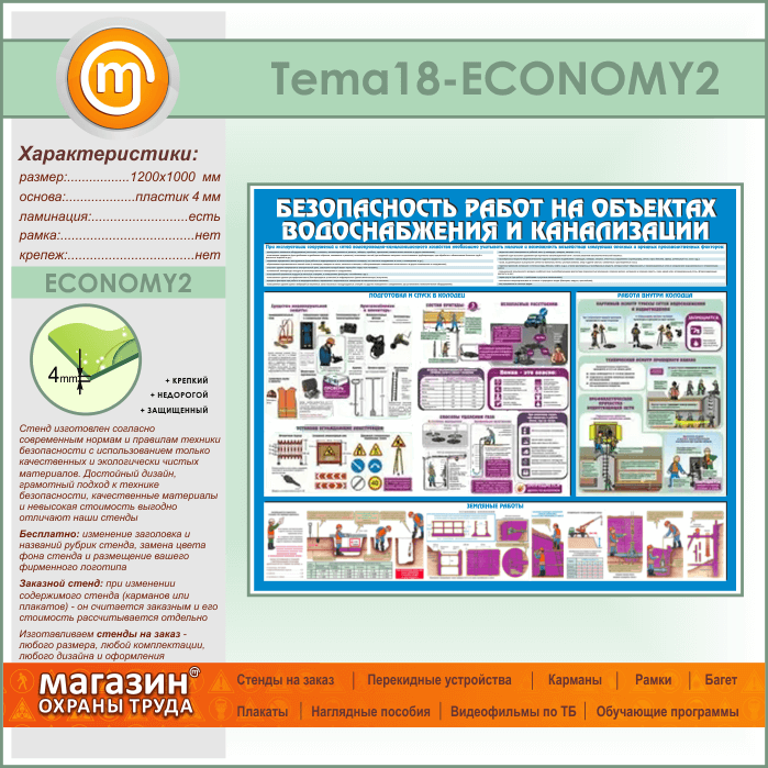 Стенд «Безопасность работ на объектах водоснабжения и канализации» (TM-18-ECONOMY2) в Томске купить