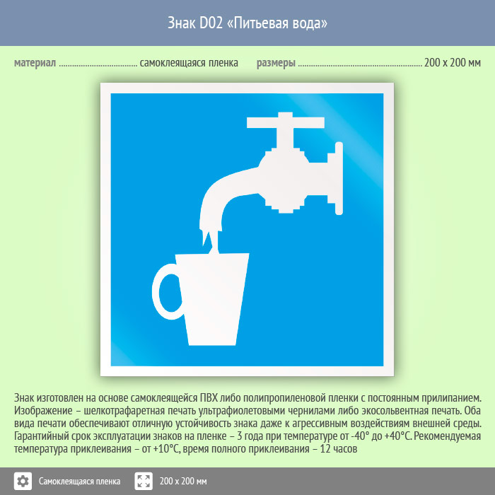 Знак D02 «Питьевая вода» (пленка, 200х200 мм) в Томске купить