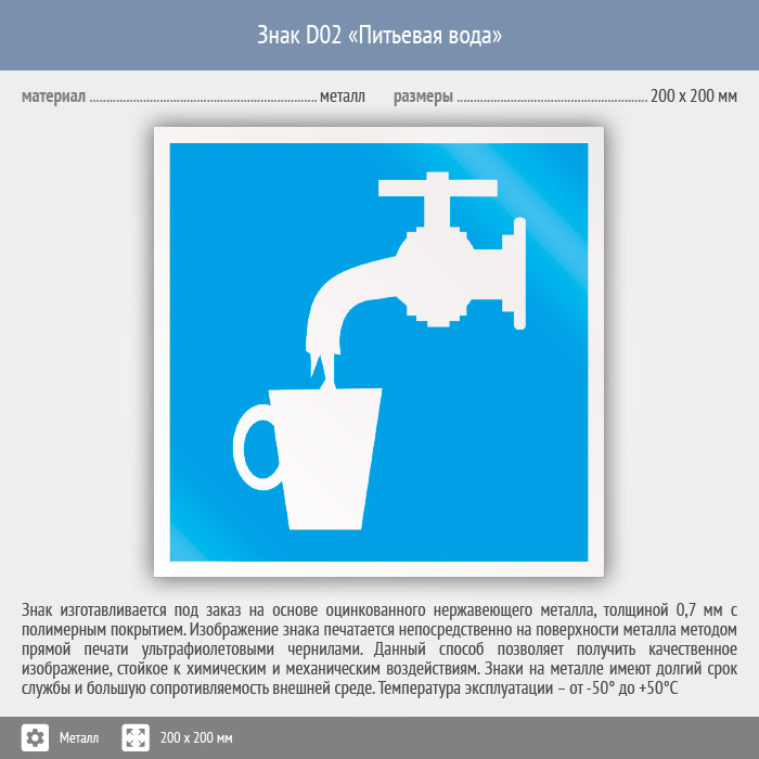 Знак D02 «Питьевая вода» (металл, 200х200 мм) в Томске купить