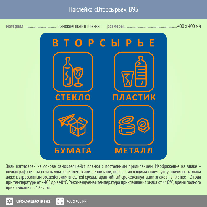 Наклейка на бак «Вторсырьё», B95 (пленка, 400х400 мм) в Томске купить