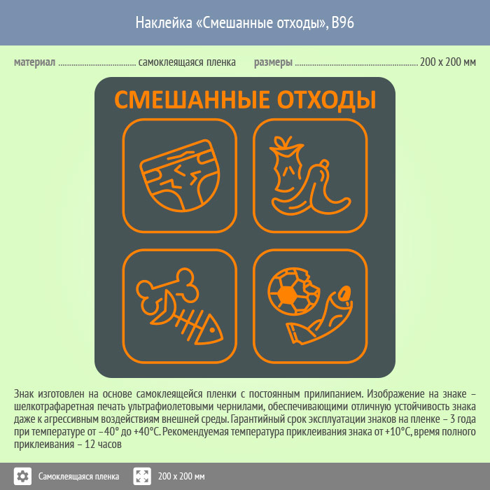 Наклейка на бак «Смешанные отходы», B96 (пленка, 200х200 мм) в Томске купить
