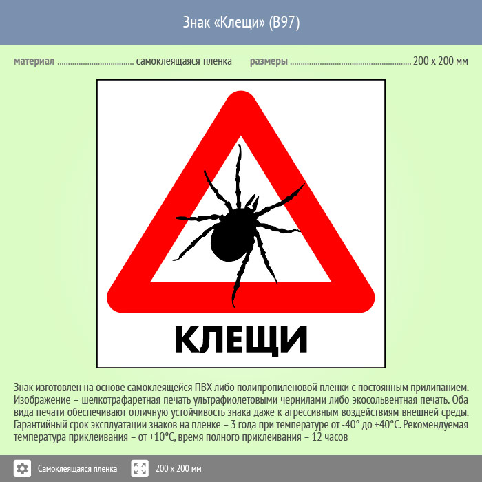 Знак «Клещи», B97 (пленка, 300х300 мм) в Томске купить