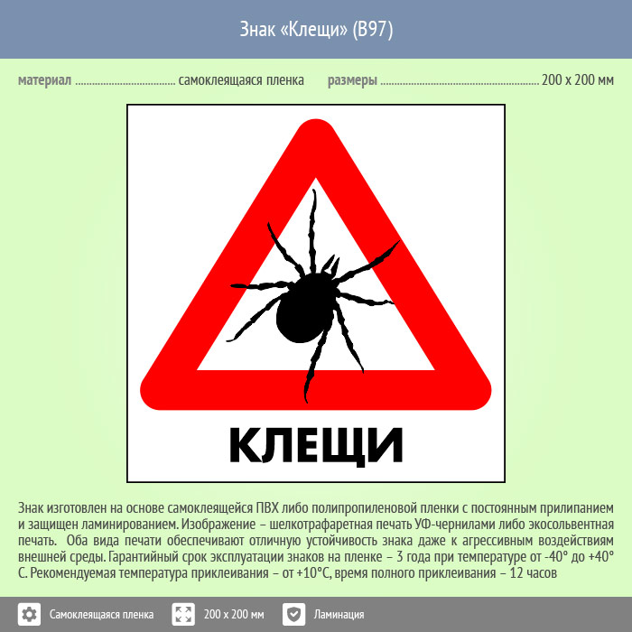 Знак «Клещи», B97 (пленка c ламинированием, 300х300 мм) в Томске купить