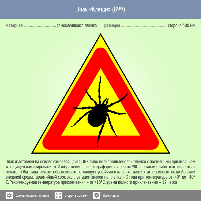 Знак «Клещи», B99 (пленка c ламинированием, сторона 200 мм) в Томске купить
