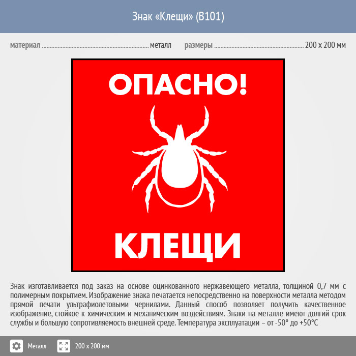 Знак «Опасно! Клещи», B101 (металл, 200х200 мм) в Томске купить