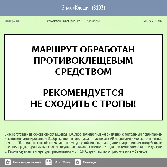 Знак «Клещи», B103 (пленка c ламинированием, 400х300 мм) в Томске купить