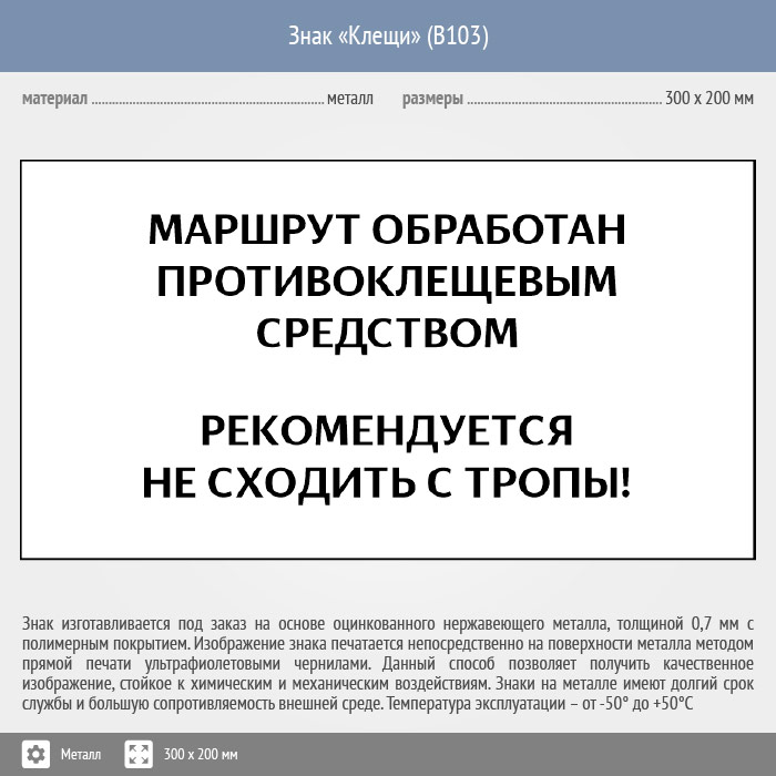 Знак «Клещи», B103 (металл, 400х300 мм) в Томске купить