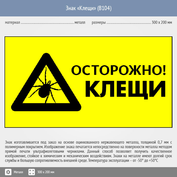 Знак «Осторожно! Клещи», B104 (металл, 400х300 мм) в Томске купить