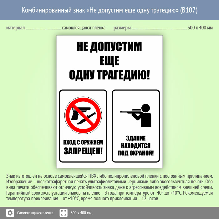 Комбинированный знак «Не допустим еще одну трагедию», B107 (пленка, 300х400 мм) в Томске купить