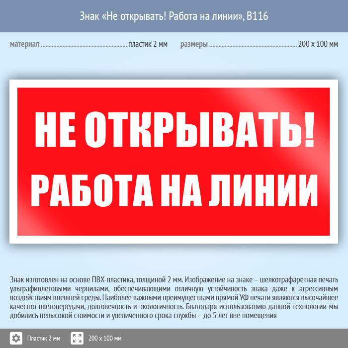 Знак «Не открывать! Работа на линии», B116 (пластик, 200х100 мм) в Томске купить