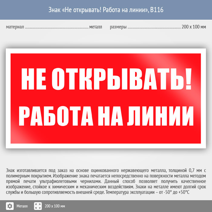Знак «Не открывать! Работа на линии», B116 (металл, 200х100 мм) в Томске купить