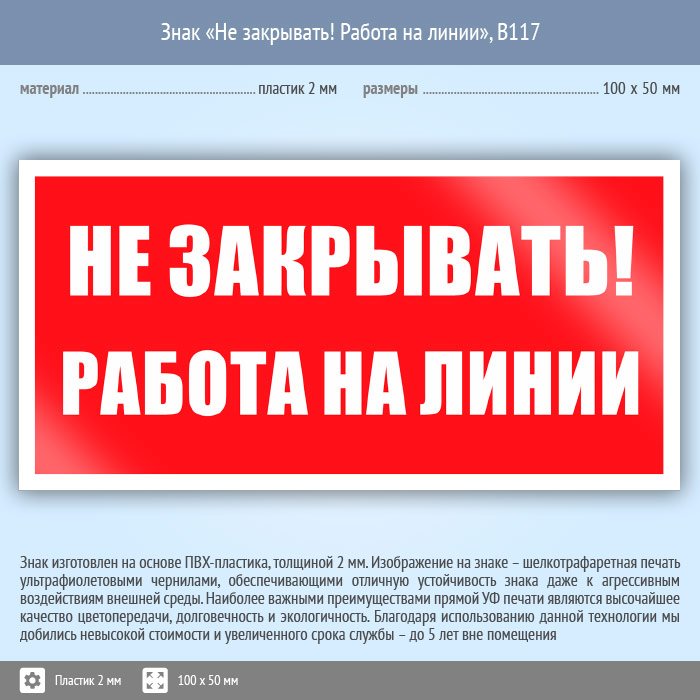Знак «Не закрывать! Работа на линии», B117 (пластик, 100х50 мм) в Томске купить