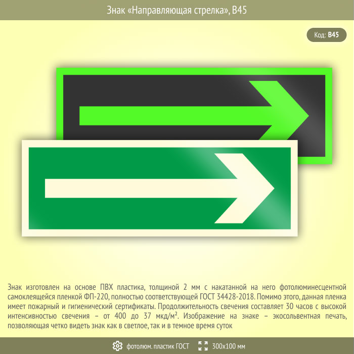 Знак «Направляющая стрелка», B45 (фотолюминесцентный пластик ГОСТ 34428-2018, 300х100 мм) в Томске купить