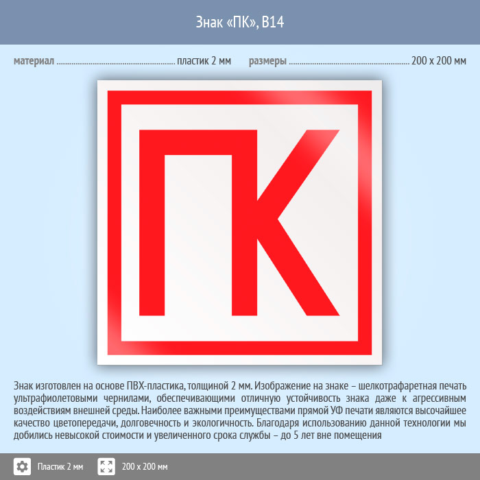 Знак «ПК», B14 (пластик, 200х200 мм) в Томске купить