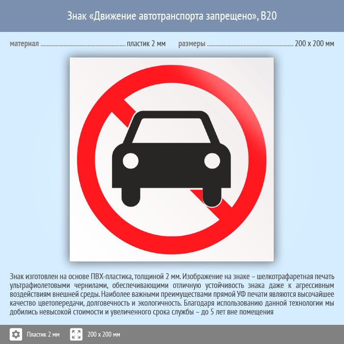 Знак «Движение автотранспорта запрещено», B20 (пластик, 200х200 мм) в Томске купить