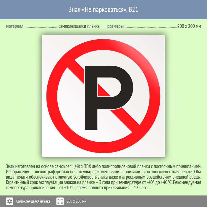 Знак «Не парковаться», B21 (пленка, 200х200 мм) в Томске купить