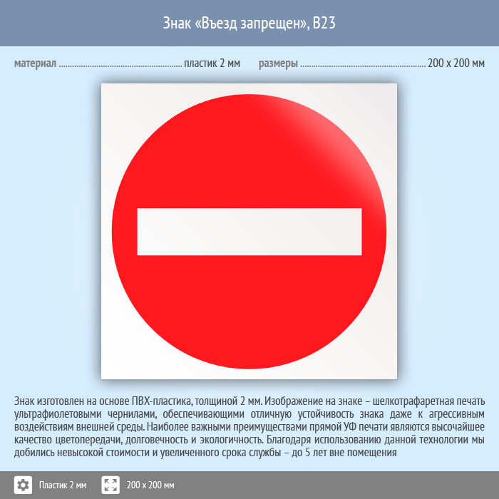 Знак «Въезд запрещен», B23 (пластик, 200х200 мм) в Томске купить