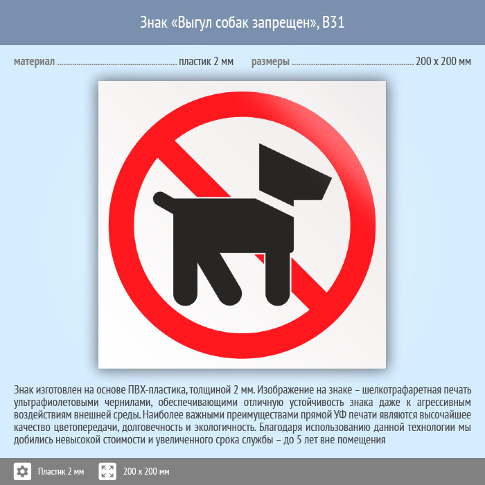 Знак «Выгул собак запрещен», B31 (пластик, 200х200 мм) в Томске купить