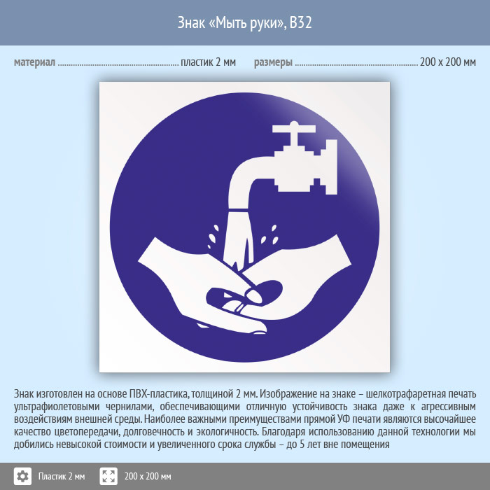 Знак «Мыть руки», B32 (пластик, 200х200 мм) в Томске купить