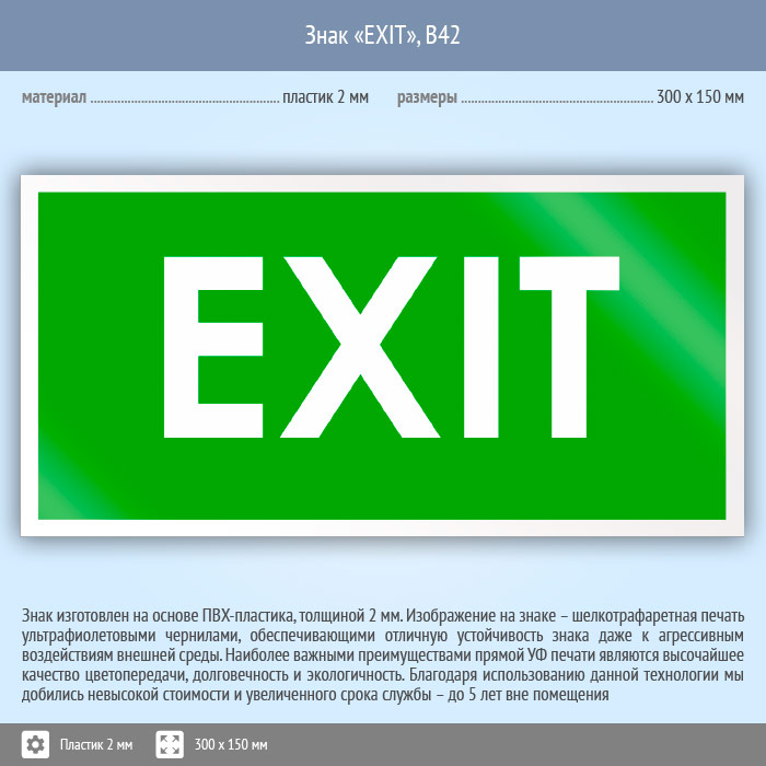 Знак «EXIT», B42 (пластик, 300х150 мм) в Томске купить