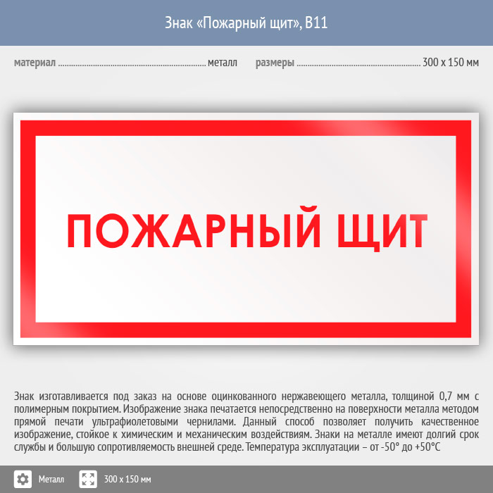 Знак «Пожарный щит», B11 (металл, 300х150 мм) в Томске купить