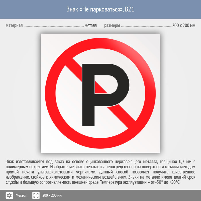 Знак «Не парковаться», B21 (металл, 200х200 мм) в Томске купить