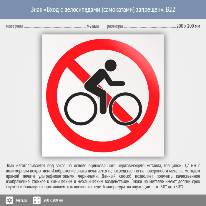 Знак «Вход с велосипедами (самокатами) запрещен», B22 (металл, 200х200 мм) в Томске купить
