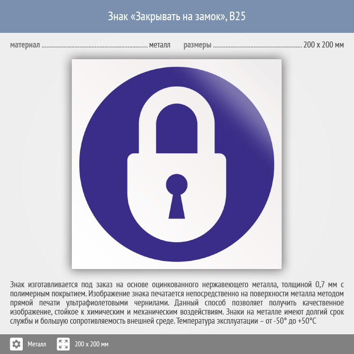 Знак «Закрывать на замок», B25 (металл, 200х200 мм) в Томске купить