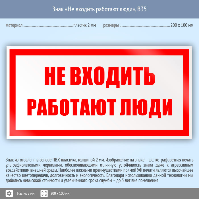 Знак «Не входить работают люди», B35 (пластик, 200х100 мм) в Томске купить