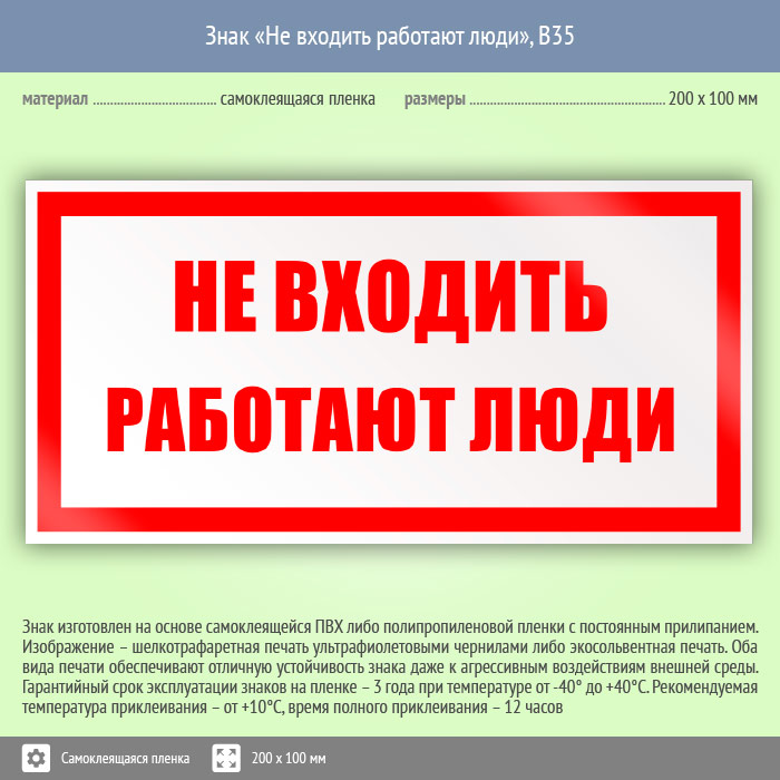 Знак «Не входить работают люди», B35 (пленка, 200х100 мм) в Томске купить