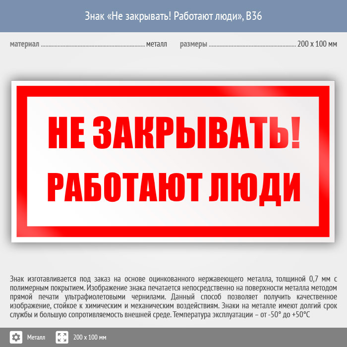 Знак «Не закрывать! Работают люди», B36 (металл, 200х100 мм) в Томске купить