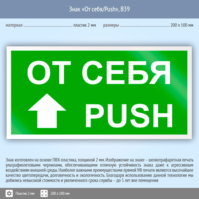 Знак «От себя/Push», B39 (пластик, 200х100 мм) в Томске купить