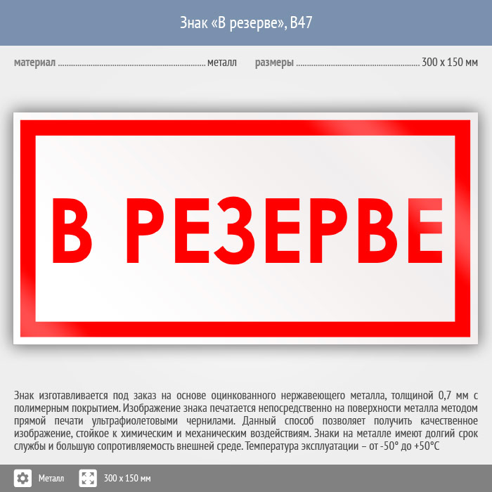 Знак «В резерве», B47 (металл, 300х150 мм) в Томске купить