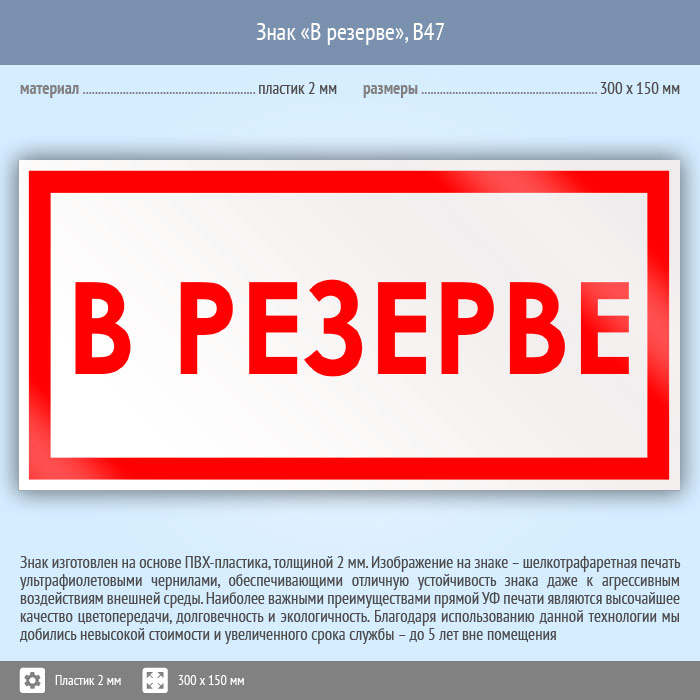 Знак «В резерве», B47 (пластик, 300х150 мм) в Томске купить