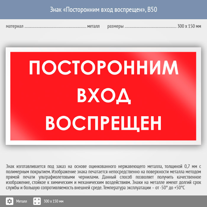 Знак «Посторонним вход воспрещен», B50 (металл, 300х150 мм) в Томске купить