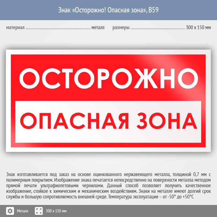 Знак «Осторожно! Опасная зона», B59 (металл, 300х150 мм) в Томске купить