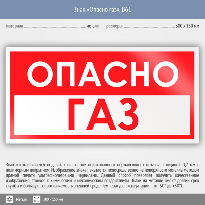 Знак «Опасно газ», B61 (металл, 300х150 мм) в Томске купить