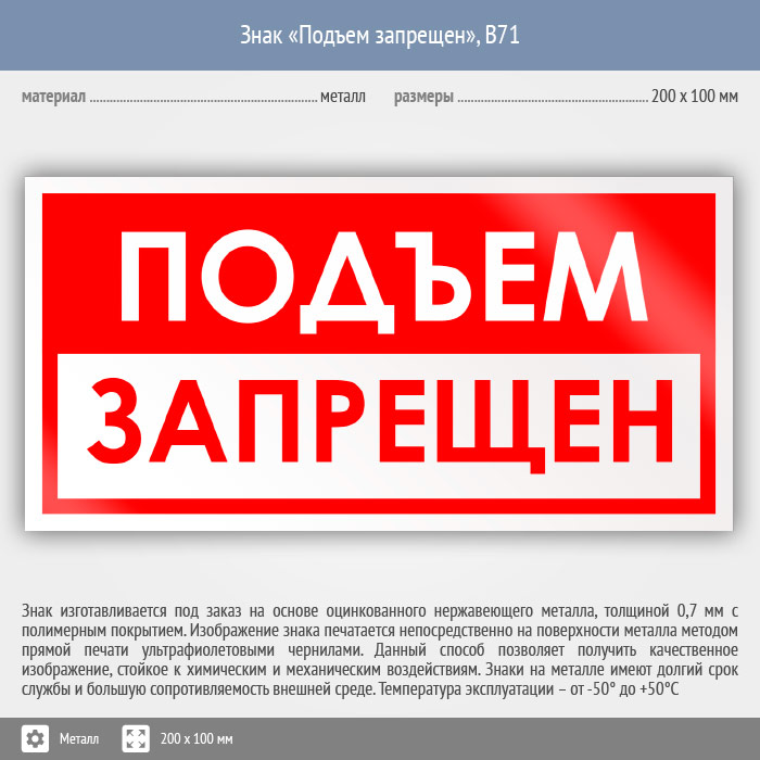 Знак «Подъем запрещен», B71 (металл, 200х100 мм) в Томске купить