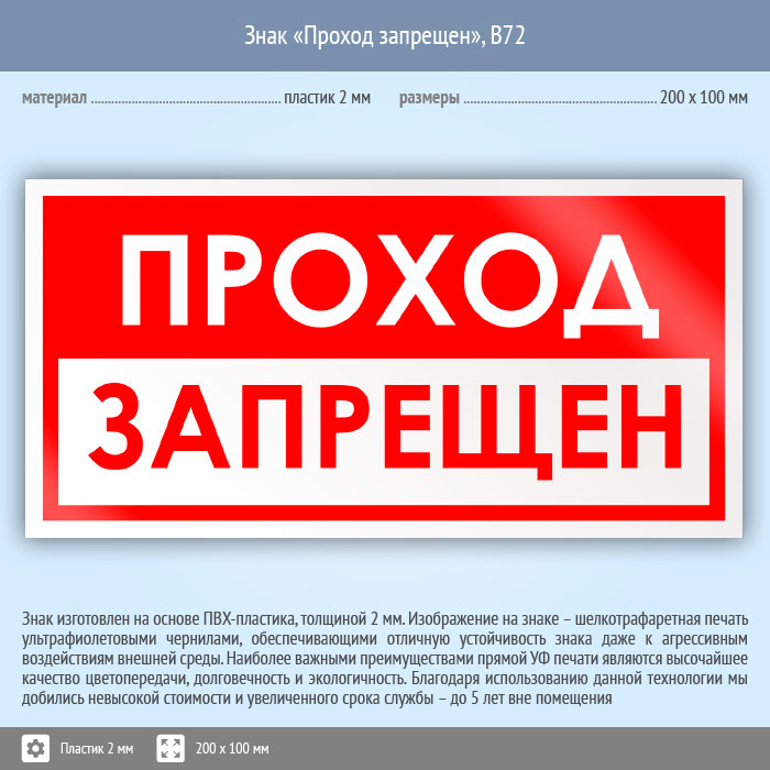 Знак «Проход запрещен», B72 (пластик, 200х100 мм) в Томске купить