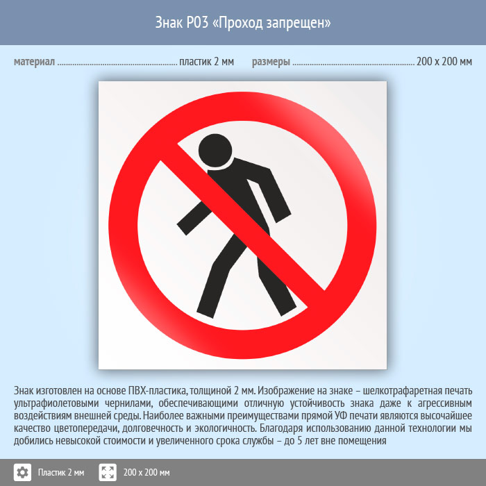 Знак P03 «Проход запрещен» (пластик, 200х200 мм) в Томске купить