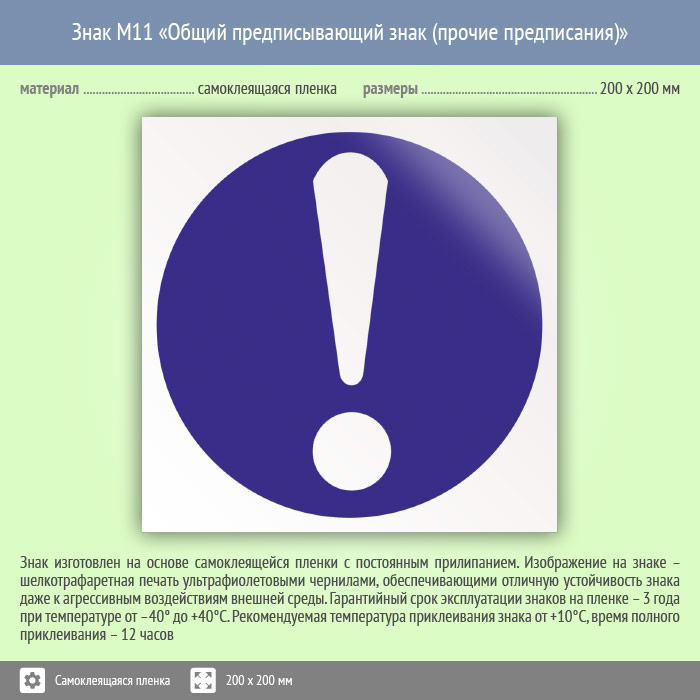 Знак M11 «Общий предписывающий знак (прочие предписания)» (пленка, 200х200 мм)