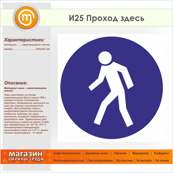 Знак «Проход здесь», И25