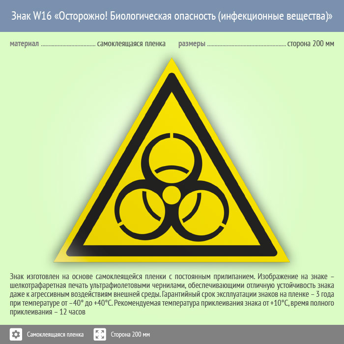 Знак W16 «Осторожно! Биологическая опасность (инфекционные вещества)»