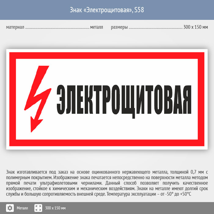 Знак (плакат) «Электрощитовая», S58 (металл, 300х150 мм) в Томске купить