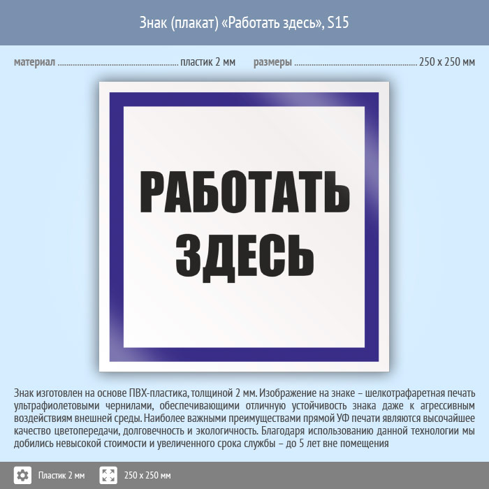 Знак (плакат) «Работать здесь», S15 (пластик, 250х250 мм) в Томске купить