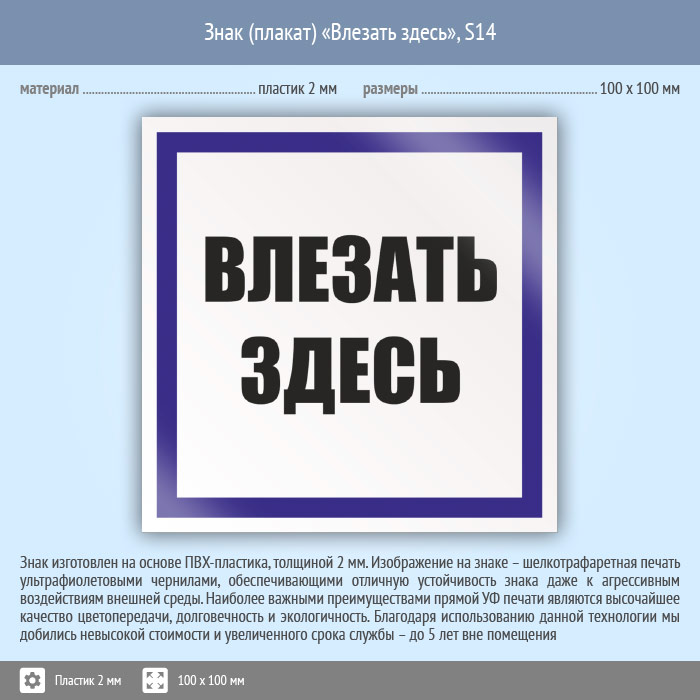 Знак (плакат) «Влезать здесь», S14 (пластик, 100х100 мм) в Томске купить